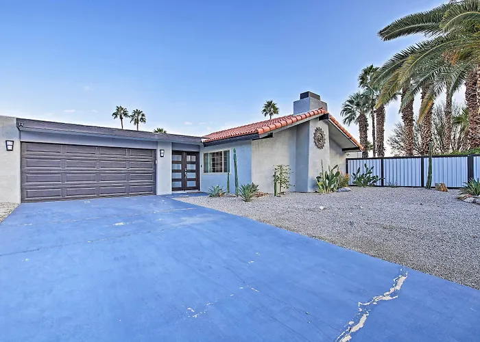 Willa Pet-Friendly Palm Springs Escape With Heated Pool! posiada wyposażony aneks kuchenny z lodówką, piekarnikiem i płytą grzejną. Goście mogą zjeść kolację restauracji McDonald's, w odległości 13 min spacerem. Najbliższe lotnisko do obiektu to Palm Springs International, oddalone o 5 km. Na miejscu dostępny jest patio, a w pobliżu willi można uprawiać squash i racquetball.